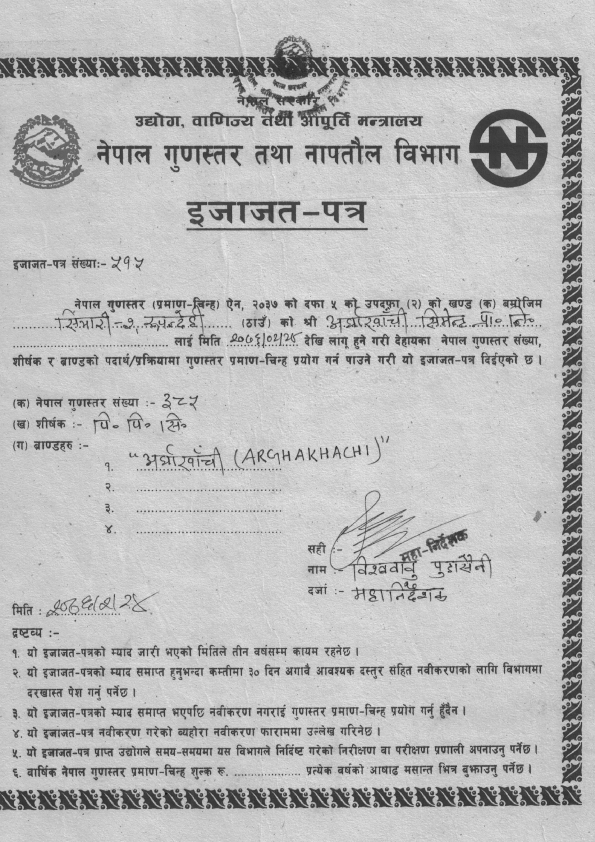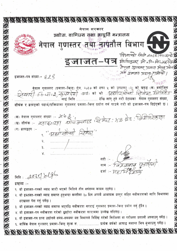 The company’s commitment to quality is validated by the prestigious Nepal Standard Mark (NS: 572) awarded by the Government of Nepal. ACL has expanded its vision globally, entering the Indian market with certifications IS 1489:2015 and IS 269:2015, signifying a significant step towards international recognition.